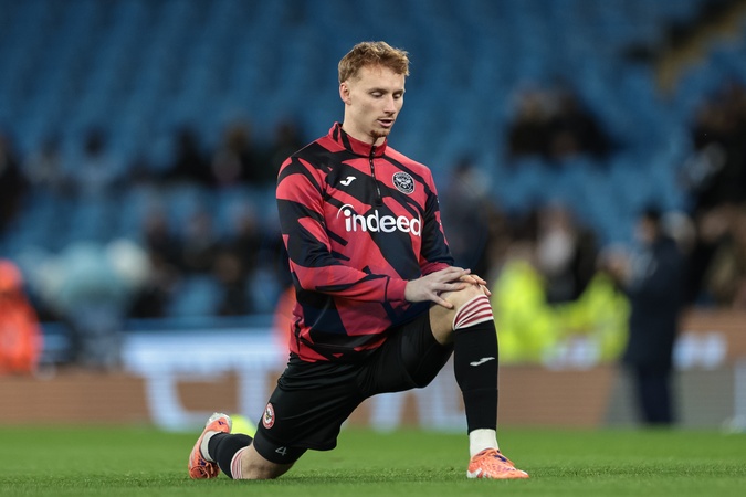 Sepp van den Berg of Brentford in the pregame warmup session during the Carabao Cup Quarter Final match Manchester City vs Brentford at Etihad Stadium, Manchester, United Kingdom, 17th December 2025, Credit:Mark Cosgrove/News Images / Avalon