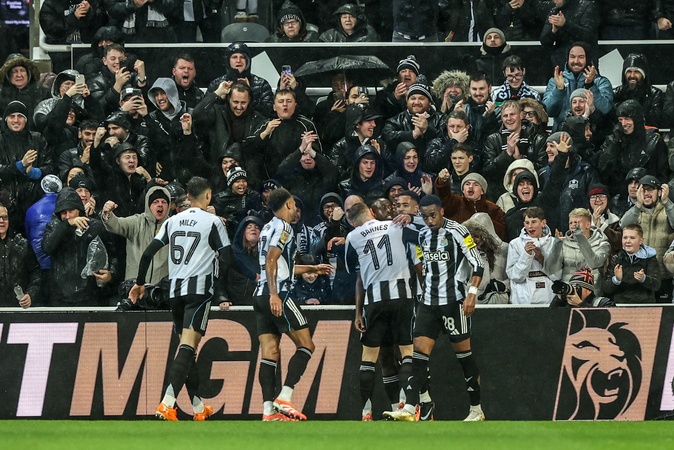 Yoane Wissa of Newcastle United celebrates his goal to make it 1-0 during the Carabao Cup Quarter Final match Newcastle United vs Fulham at St. James's Park, Newcastle, United Kingdom, 17th December 2025, Credit:Ae Cosgrove/News Images / Avalon