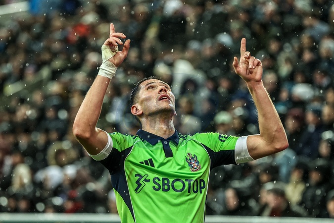 Sasa Lukic of Fulham celebrates his goal to make it 1-1 during the Carabao Cup Quarter Final match Newcastle United vs Fulham at St. James's Park, Newcastle, United Kingdom, 17th December 2025, Credit:Ae Cosgrove/News Images / Avalon