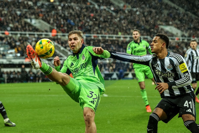 Emile Smith Rowe of Fulham puts the ball back into the box during the Carabao Cup Quarter Final match Newcastle United vs Fulham at St. James's Park, Newcastle, United Kingdom, 17th December 2025, Credit:Ae Cosgrove/News Images / Avalon