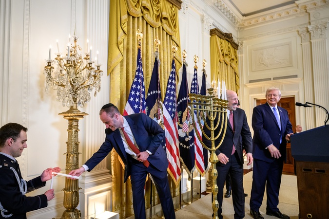 President Donald Trump participates in a Hanukkah Reception in the East Wing of the White House, Tuesday, December 16, 2025., Credit:Molly Riley / Avalon