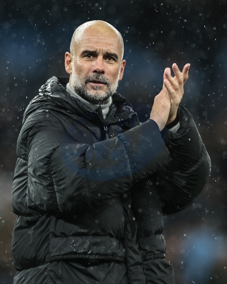 Pep Guardiola manager of Manchester City applauds the fans after the final whistle during the Carabao Cup Quarter Final match Manchester City vs Brentford at Etihad Stadium, Manchester, United Kingdom, 17th December 2025, Credit:Mark Cosgrove/News Images / Avalon