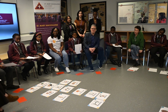 UK Prime Minister Keir Starmer visits the St Mary Magdalene school in London