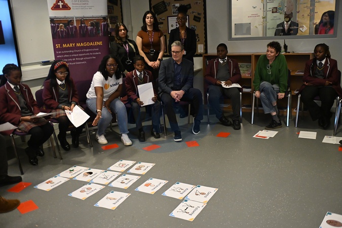 UK Prime Minister Keir Starmer visits the St Mary Magdalene school in London