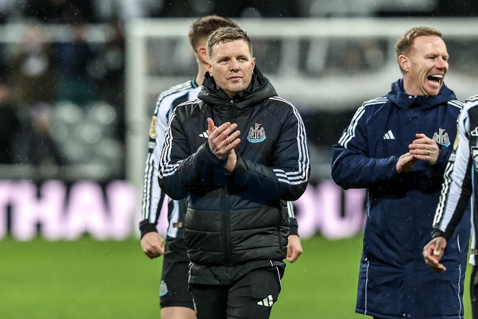 Eddie Howe manager of Newcastle United applauds the fans after the game during the Carabao Cup Quarter Final match Newcastle United vs Fulham at St. James's Park, Newcastle, United Kingdom, 17th December 2025, Credit:Ae Cosgrove/News Images / Avalon