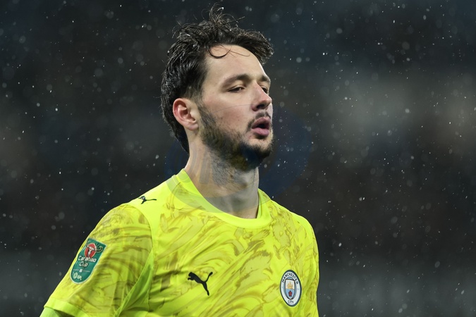 Manchester City goalkeeper James Trafford during the Carabao Cup Quarter Final match Manchester City vs Brentford at Etihad Stadium, Manchester, United Kingdom, 17th December 2025, Credit:Mark Cosgrove/News Images / Avalon