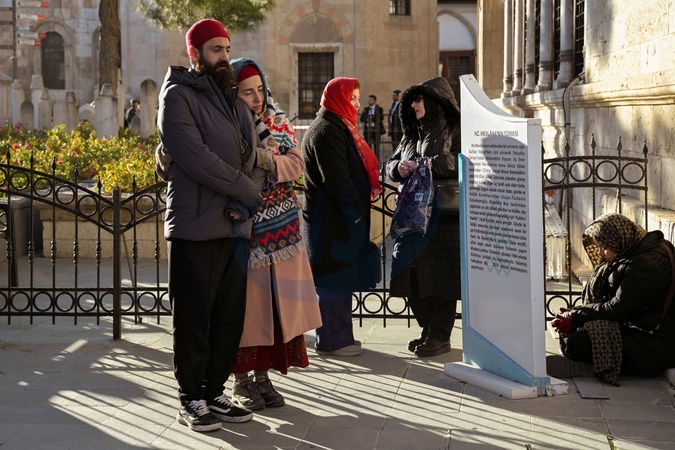 The 752nd anniversary of the death of the mystic Mevlana Celaleddin Rumi concluded with numerous visitors to the museum-mausoleum and the sema, the dance of the whirling dervishes, in the Mevlana Kultur Merkezi. Pictured: Visitors praying in the garden. Konya, Turkiye 17 December 2025, Credit:Valeria Ferraro / Avalon