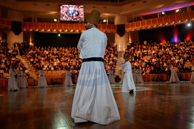 A moment from the sema ceremony commemorating Rumi's death. The 752nd anniversary of the death of the mystic Mevlana Celaleddin Rumi concluded with numerous visitors to the museum-mausoleum and the sema, the dance of the whirling dervishes, at the Mevlana Kultur Merkezi. Konya, Turkiye 17 December 2025, Credit:Valeria Ferraro / Avalon