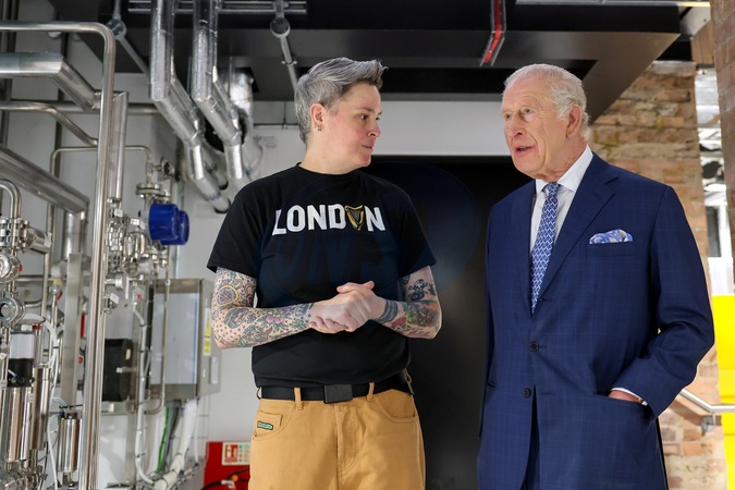 Hollie Stephenson, Master Brewer gives King Charles III a tour of the microbrewery during his visit to Guinness Open Gate Brewery London on December 18, 2025 in London, England., Credit:Avalon.red / Avalon
