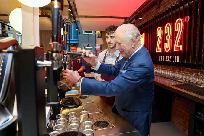 King Charles III pours a pint of Guinness during his visit to Guinness Open Gate Brewery London on December 18, 2025 in London, England., Credit:Avalon.red / Avalon