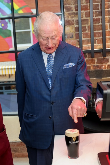 King Charles III prints a festive image on a pint of Guinness during his visit to Guinness Open Gate Brewery London on December 18, 2025 in London, England., Credit:Avalon.red / Avalon