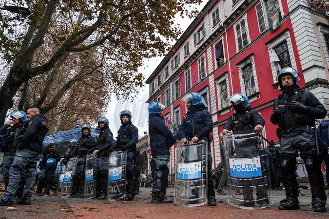 December 18, 2025, Turin, Corso Regina 47. Search and eviction of the Askatasuna social center., Credit:Selene Daniele / Avalon