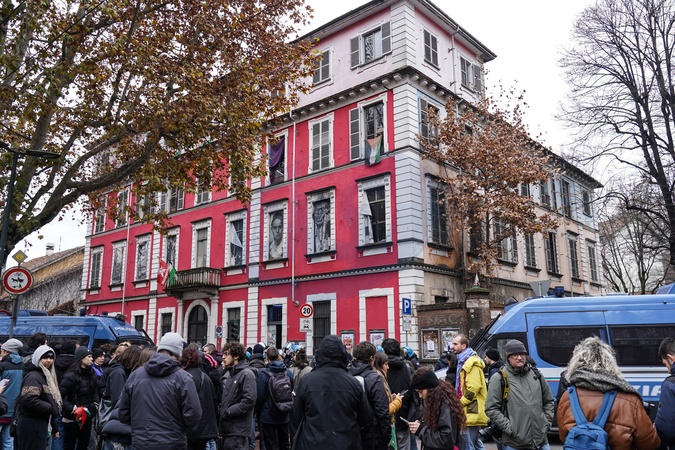 December 18, 2025, Turin, Corso Regina 47. Search and eviction of the Askatasuna social center., Credit:Selene Daniele / Avalon