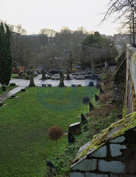 Roman garden by the Roman walls and the River Dee.Chester, Cheshire, North west England. . United Kingdom. 16 December 2025, Credit:Mark Fairhurst / Avalon