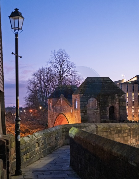 Newgate bridge on the Roman walls in the evening. Chester, Cheshire, North west England. . United Kingdom. 16 December 2025, Credit:Mark Fairhurst / Avalon