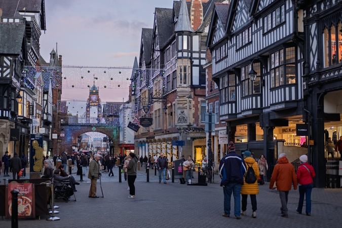 Chester at Christmas time. Chester, Cheshire, North west England.