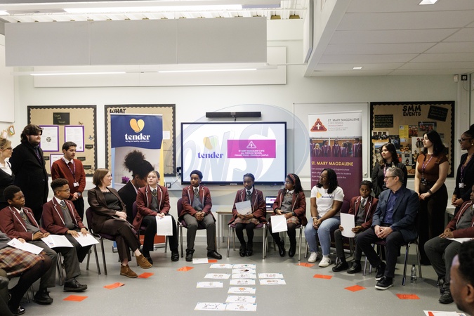 17/12/2025. London, United Kingdom. Prime Minister Keir Starmer, visits the St Mary Magdalene School with Parliamentary Under-Secretary of State for Safeguarding and Violence Against Women and Girls Jess Phillips and Actress Olivia Colman to talk to students about Violence against women and girls., Credit:Simon Dawson / Avalon