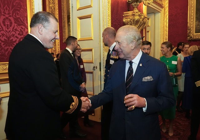 King Charles III (right) during a reception at St James's Palace in London, to celebrate the return of HMS Prince of Wales from an eight-month deployment with the Carrier Strike Group (CSG25), known as Operation Highmast. Picture date: Thursday December 18, 2025., Credit:Aaron Chown / Avalon