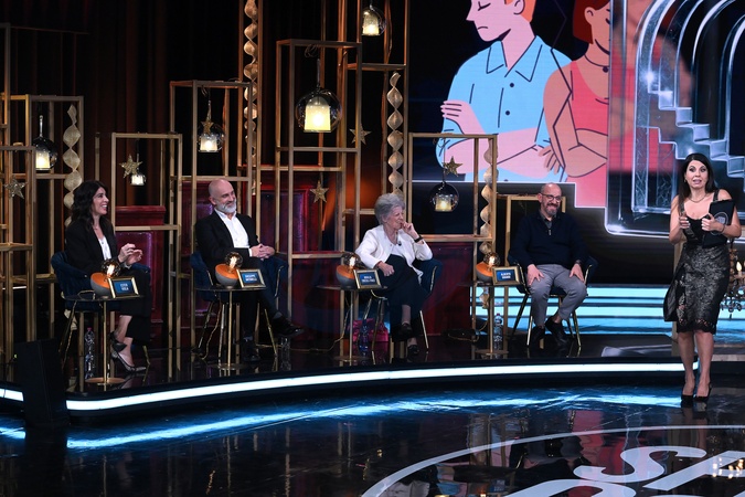 TV show "Splendid Frame" - Rai 3, pictured: Geppi Cucciari, Ester Viola, Giuseppe Antonelli, Amalia Ercoli Finzi, Alberto Grandi , Milan, Dec 18th 2025, Credit:AGF / Avalon