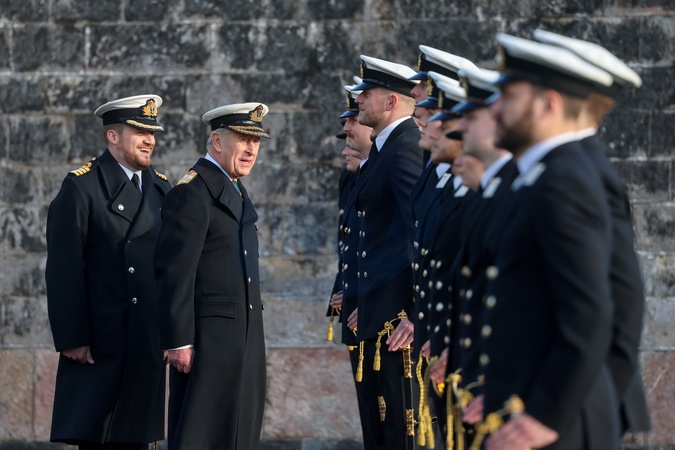 King Charles III, The Lord High Admiral, inspects the Guard at Britannia Royal Naval College accompanied by Captain Andrew Bray (L) on December 19, 2025 in Dartmouth, England. King Charles III, The Lord High Admiral, presides over the Lord High Admiral's Divisions at Britannia Royal Naval College (BRNC), where he oversees the blessing of the King's new colours and inspects the front ranks, Credit:Avalon.red / Avalon