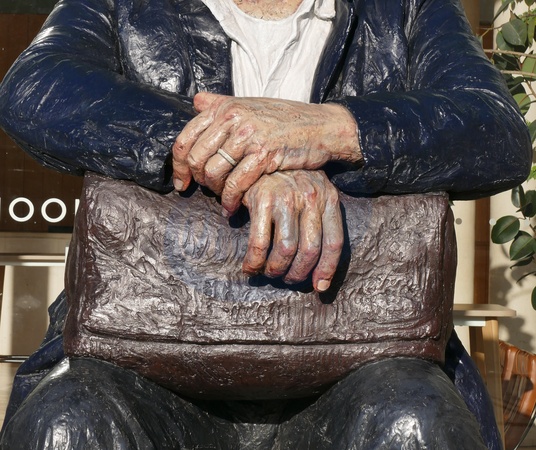 Sculptures at The ‘Who Am I?' Exhition at The Said School. This major exhibition brings together sculptures by celebrated British artist Sean Henry within the striking Saïd Business School in Oxford. Created between 2001 and 2024, these figurative works are installed throughout the School's lobby and Romanesque corridors, culminating in the monumental Seated Figure a three-metre-high bronze that looks out onto the city from the School's public courtyard.The exhibition invites visitors to reflect on themes of identity, perception, and connection. Henry's polychrome sculptures, painted in naturalistic tones, feel at once familiar and enigmatic. Through their scale, posture, and expression, they prompt questions about who we are, how we see others, and how art can reframe our sense of self within public space., Credit:Geoffrey Swaine / Avalon