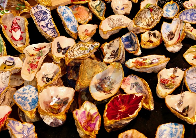 A selection of hand painted gifts for sale in the Christmas Market in Broad Street., Credit:Geoffrey Swaine / Avalon