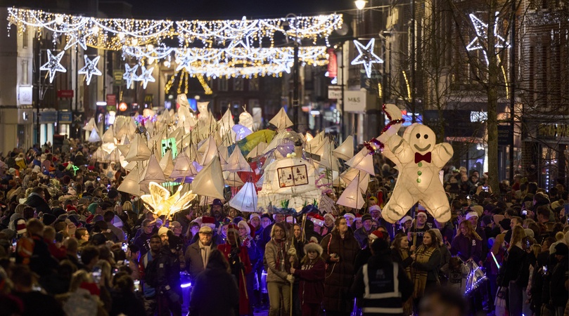 Corn Exchange Newbury's annual Festival of Light draw crowds for a vibrant procession in the town centre, Newbury, UK, 14 December 2025., Credit:Adam Hillier / Avalon