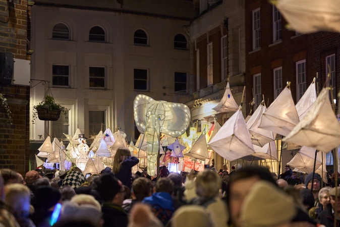 Corn Exchange Newbury's annual Festival of Light draw crowds for a vibrant procession in the town centre, Newbury, UK, 14 December 2025., Credit:Adam Hillier / Avalon
