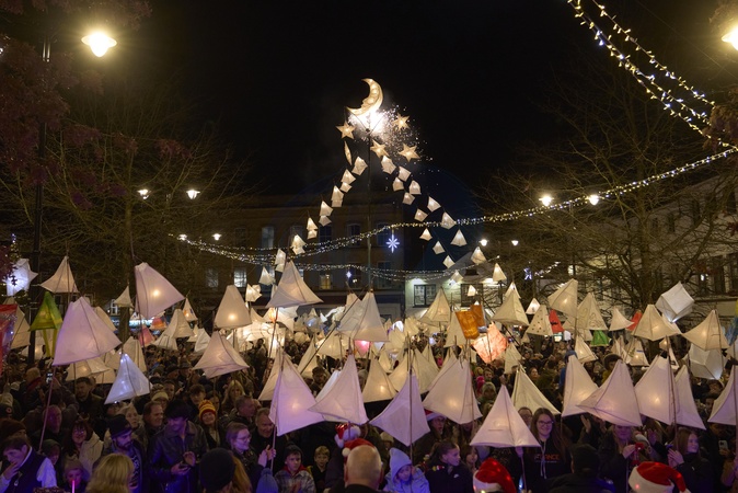 Corn Exchange Newbury's annual Festival of Light draw crowds for a vibrant procession in the town centre, Newbury, UK, 14 December 2025., Credit:Adam Hillier / Avalon