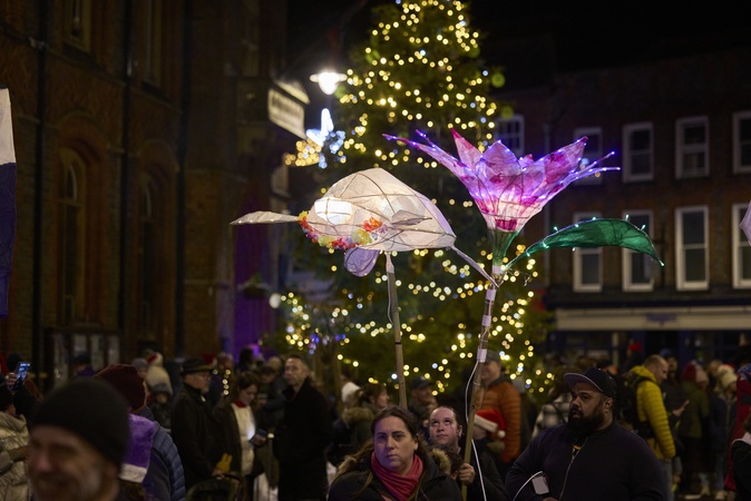 Corn Exchange Newbury's annual Festival of Light draw crowds for a vibrant procession in the town centre, Newbury, UK, 14 December 2025., Credit:Adam Hillier / Avalon