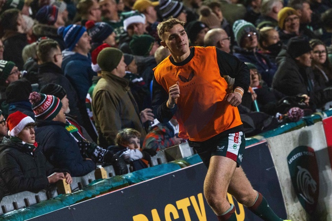 Jack van Poortvliet of Leicester Tigers during the Gallagher Premiership match Leicester Tigers vs Gloucester Rugby at Mattioli Woods Welford Road Stadium, Leicester, United Kingdom, 19th December 2025, Credit:Craig Evans/News Images / Avalon