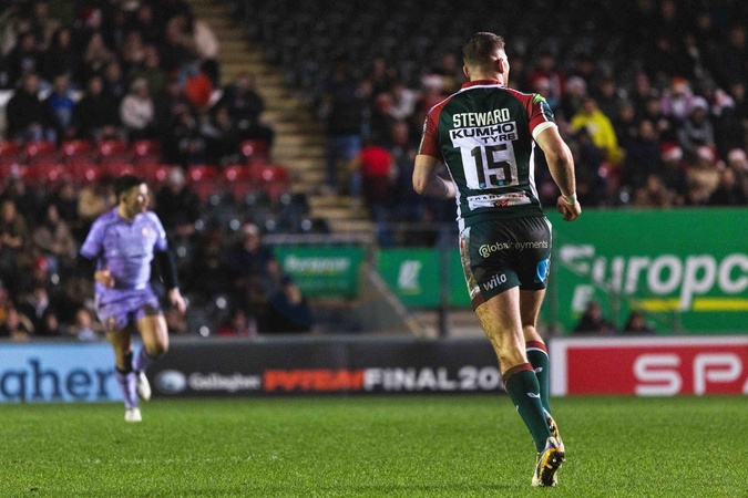 Freddie Steward of Leicester Tigers during the Gallagher Premiership match Leicester Tigers vs Gloucester Rugby at Mattioli Woods Welford Road Stadium, Leicester, United Kingdom, 19th December 2025, Credit:Craig Evans/News Images / Avalon