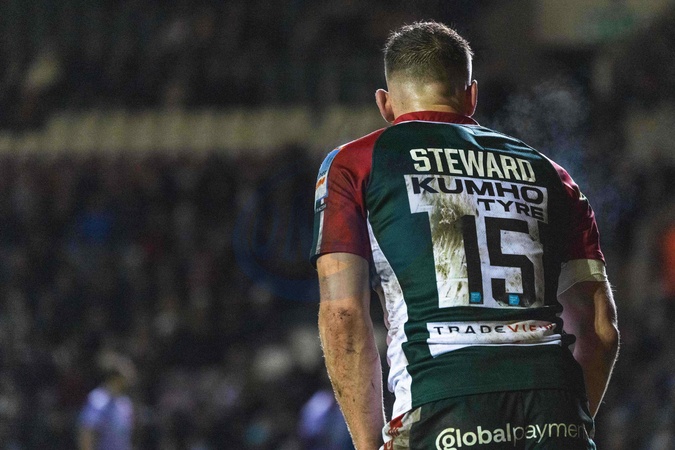 Freddie Steward of Leicester Tigers during the Gallagher Premiership match Leicester Tigers vs Gloucester Rugby at Mattioli Woods Welford Road Stadium, Leicester, United Kingdom, 19th December 2025, Credit:Craig Evans/News Images / Avalon