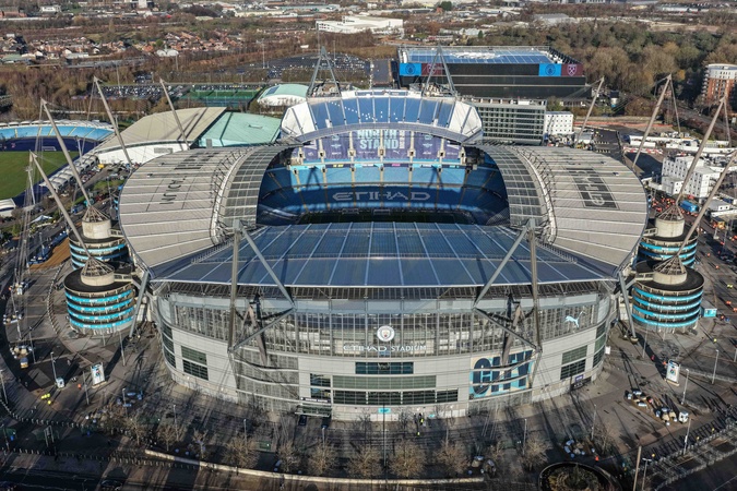 An aerial view of The Etihad Stadium during the Premier League match Manchester City vs West Ham United at Etihad Stadium, Manchester, United Kingdom, 20th December 2025, Credit:Mark Cosgrove/News Images / Avalon