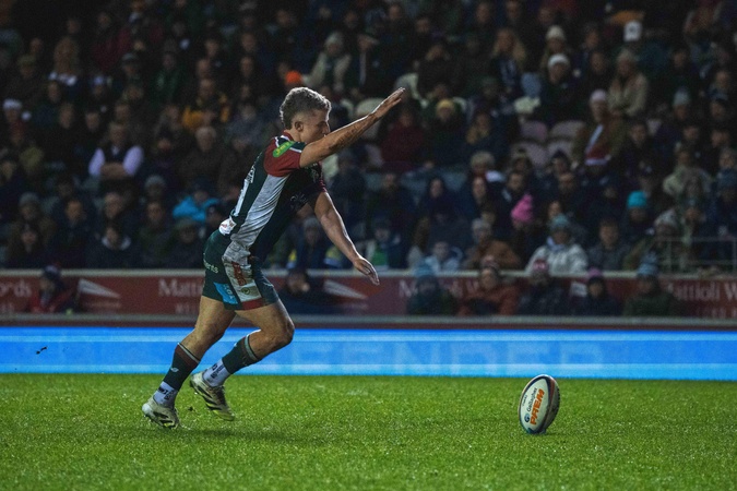 Billy Searle of Leicester Tigers during the Gallagher Premiership match Leicester Tigers vs Gloucester Rugby at Mattioli Woods Welford Road Stadium, Leicester, United Kingdom, 19th December 2025, Credit:Craig Evans/News Images / Avalon