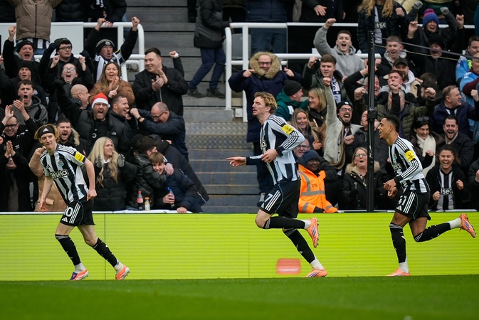 Nick Woltemade of Newcastle United celebrates his goal to make it 1-0 during the Premier League match Newcastle United vs Chelsea at St. James's Park, Newcastle, United Kingdom, 20th December 2025, Credit:Maynard Manyowa/News Images / Avalon