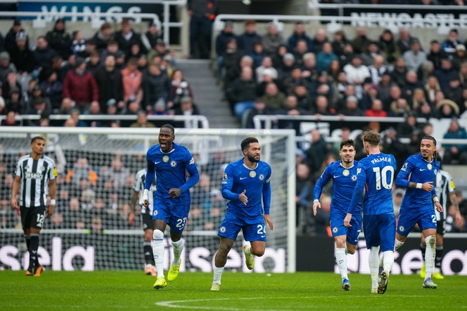 Reece James of Chelsea celebrates his goal to make it 2-1 during the Premier League match Newcastle United vs Chelsea at St. James's Park, Newcastle, United Kingdom, 20th December 2025, Credit:Maynard Manyowa/News Images / Avalon