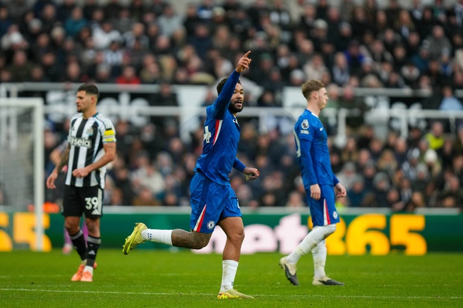 Reece James of Chelsea celebrates his team scoring the equalising goal to make it 2-2 during the Premier League match Newcastle United vs Chelsea at St. James's Park, Newcastle, United Kingdom, 20th December 2025, Credit:Maynard Manyowa/News Images / Avalon