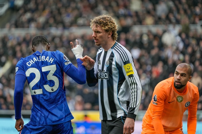 Nick Woltemade of Newcastle United involved in an altercation with Trevoh Chalobah of Chelsea during the Premier League match Newcastle United vs Chelsea at St. James's Park, Newcastle, United Kingdom, 20th December 2025, Credit:Maynard Manyowa/News Images / Avalon