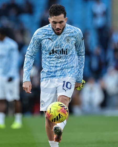 Rayan Cherki of Manchester City in the pregame warmup session during the Premier League match Manchester City vs West Ham United at Etihad Stadium, Manchester, United Kingdom, 20th December 2025, Credit:Mark Cosgrove/News Images / Avalon