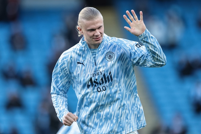 Erling Haaland of Manchester City waves to the fans in the pregame warmup session during the Premier League match Manchester City vs West Ham United at Etihad Stadium, Manchester, United Kingdom, 20th December 2025, Credit:Mark Cosgrove/News Images / Avalon