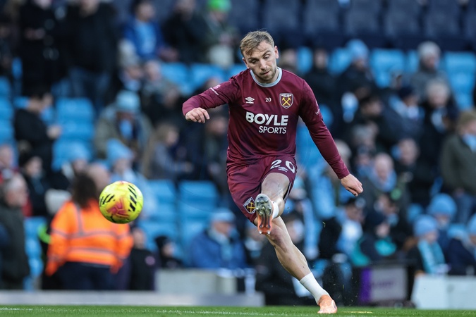 Jarrod Bowen of West Ham United in the pregame warmup session during the Premier League match Manchester City vs West Ham United at Etihad Stadium, Manchester, United Kingdom, 20th December 2025, Credit:Mark Cosgrove/News Images / Avalon