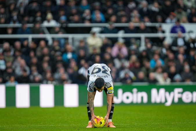 Bruno Guimaraes of Newcastle United places the ball down to take a free kick during the Premier League match Newcastle United vs Chelsea at St. James's Park, Newcastle, United Kingdom, 20th December 2025, Credit:Maynard Manyowa/News Images / Avalon