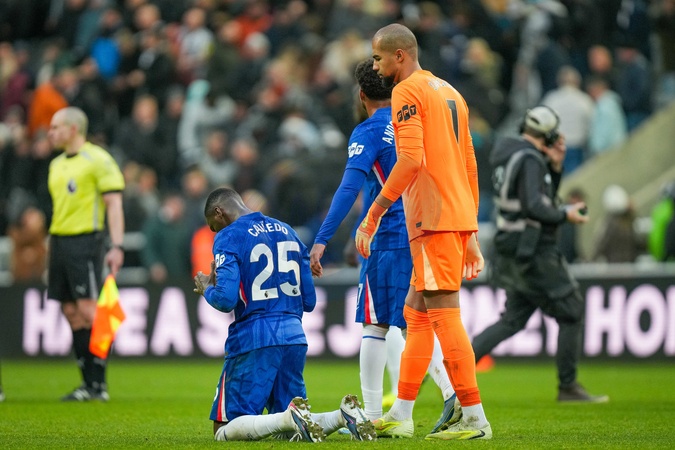 Chelsea goalkeeper Robert Sanchez goes to applaud Moises Caicedo of Chelsea at full time during the Premier League match Newcastle United vs Chelsea at St. James's Park, Newcastle, United Kingdom, 20th December 2025, Credit:Maynard Manyowa/News Images / Avalon