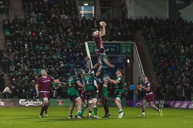 Sale Sharks win a line out during the Gallagher Premiership match Northampton Saints vs Sale Sharks at Cinch Stadium at Franklin's Gardens, Northampton, United Kingdom, 20th December 2025, Credit:Craig Evans/News Images / Avalon