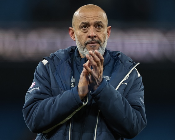 Nuno Espirito Santo manager of West Ham United applauds the fans after the final whistle during the Premier League match Manchester City vs West Ham United at Etihad Stadium, Manchester, United Kingdom, 20th December 2025, Credit:Mark Cosgrove/News Images / Avalon