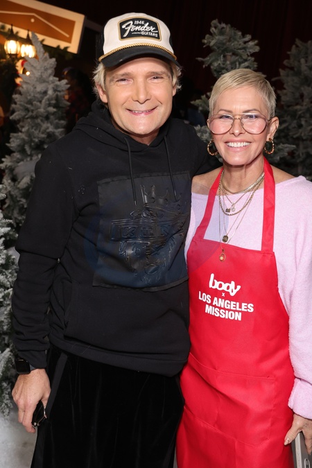 Corey Feldman and Nicole Eggert take part in the Los Angeles Mission's Annual Thanksgiving Outreach on Skid Row, Los Angeles, USA, 19 December 2025., Credit:Faye Sadou / Avalon