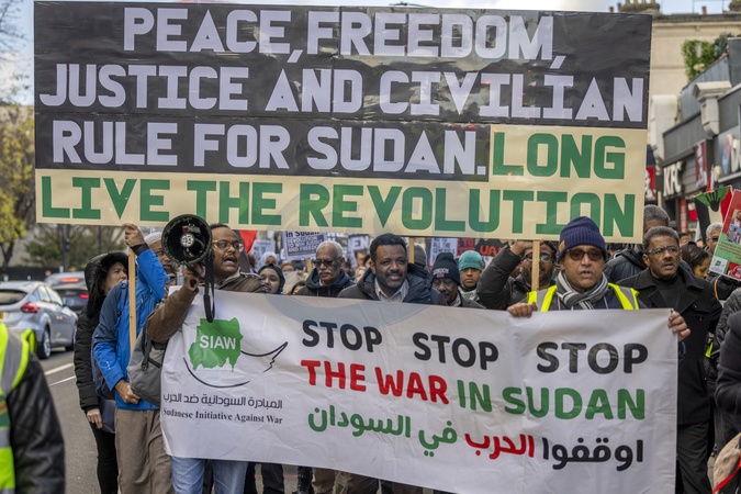 London, UK – On Saturday 20 December 2025, Sudanese communities gathered and marched from Church Street, W2 1EB to Marble Arch to commemorate the 2018 December Revolution. The demonstration honoured the martyrs of the revolution and drew attention to ongoing atrocities, displacement, starvation and alleged war crimes affecting people in Sudan. Protesters reaffirmed their commitment to a Sudan rooted in freedom, peace, justice and civilian rule, declaring that the spirit of the revolution remains alive through collective action and solidarity., Credit:Abdullah Bailey / Avalon