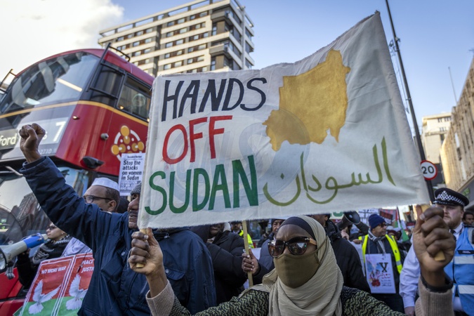 London, UK – On Saturday 20 December 2025, Sudanese communities gathered and marched from Church Street, W2 1EB to Marble Arch to commemorate the 2018 December Revolution. The demonstration honoured the martyrs of the revolution and drew attention to ongoing atrocities, displacement, starvation and alleged war crimes affecting people in Sudan. Protesters reaffirmed their commitment to a Sudan rooted in freedom, peace, justice and civilian rule, declaring that the spirit of the revolution remains alive through collective action and solidarity., Credit:Abdullah Bailey / Avalon