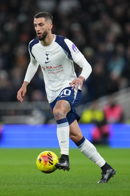 Rodrigo Bentancur of Tottenham Hotspur on the ball during the Premier League match Tottenham Hotspur vs Liverpool at Tottenham Hotspur Stadium, London, United Kingdom, 20th December 2025, Credit:Harvey Murphy/News Images / Avalon